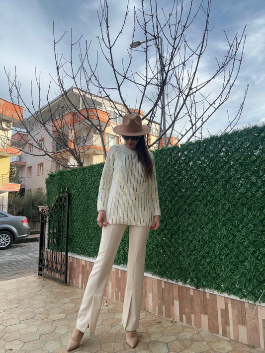 Kemer ve Broş Detaylı Gri Yelek Pantolon Takım