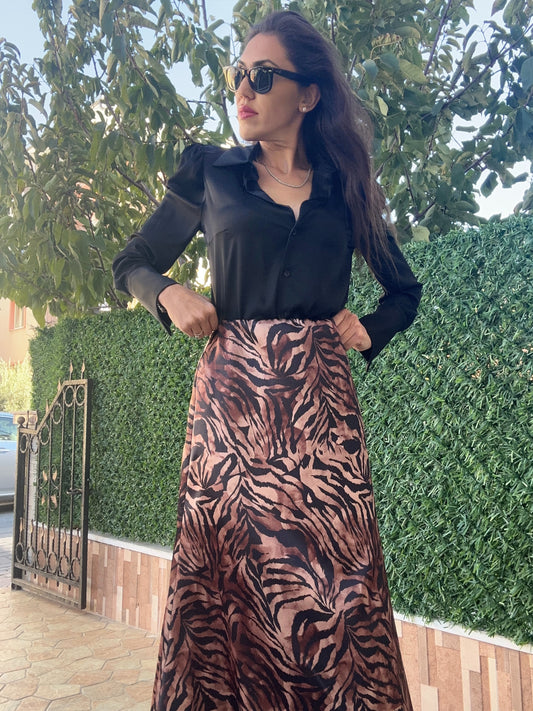İndirimMaxi Boy Zebra Desen Saten Etek