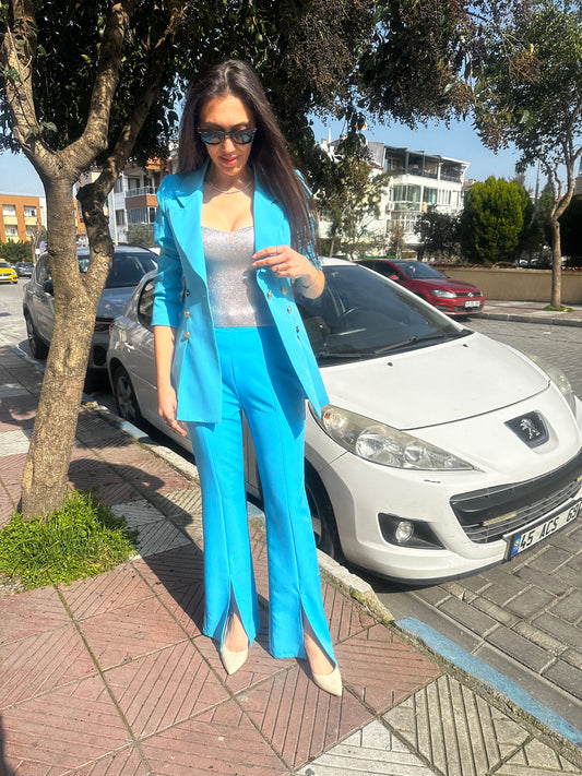 Paça Yırtmaç Detaylı Mavi Pantolon