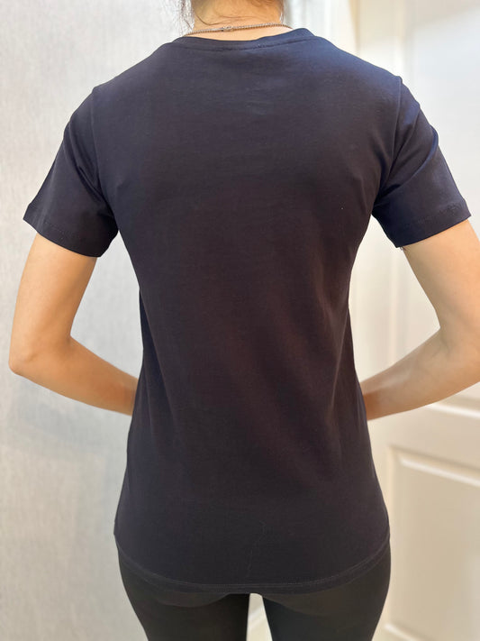 TükendiSiyah Taş İşlemeli Basic Tshirt