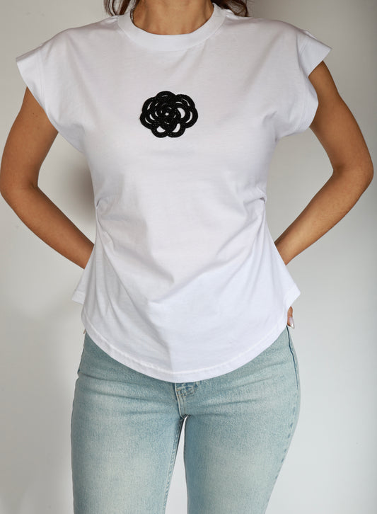 Önü İşleme Detaylı Yarasa Kol Beyaz T-shirt