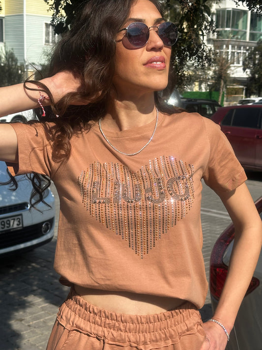 Vizon Renk Taş İşleme Detaylı Tshirt