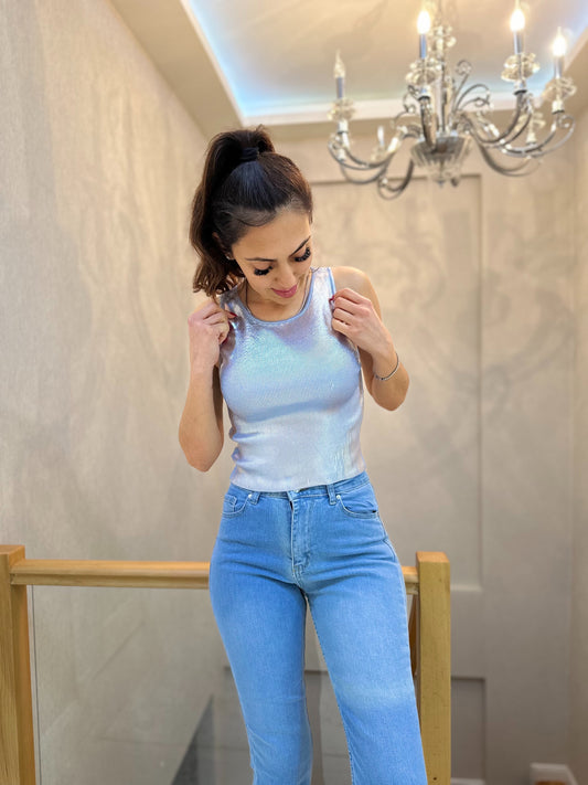 Gümüş Varaklı Bebe Mavisi Triko Top