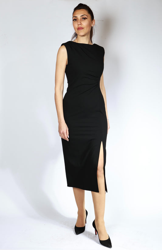 Yırtmaç ve Drape Detaylı Full Esnek Midi Boy Elbise