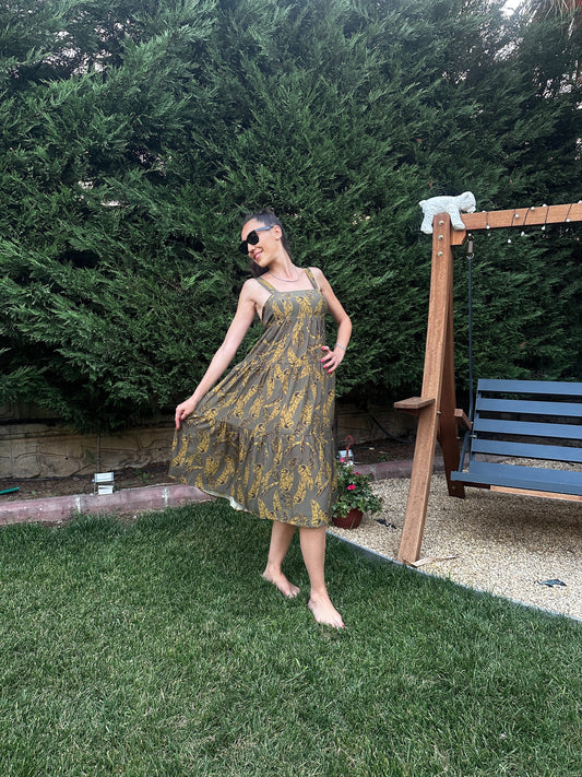 Sırtı Bağlamalı Haki Yeşil Yaz Elbisesi